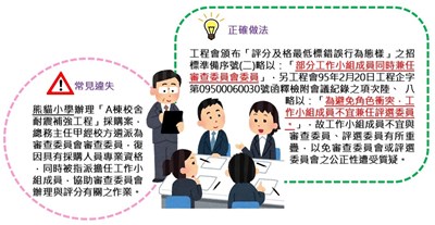 臺中市政府政風處臉書粉絲專頁109年8月14日「採購小百科 - 工作小組成員不得與審查委員、評選委員重疊」貼文,請踴躍閱覽、分享按讚。