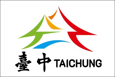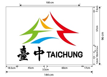 (二)湖心亭圖案置於上側,臺中與TAICHUNG字樣以黑字置於下側。