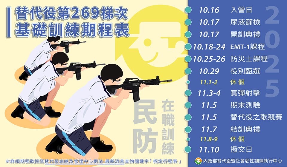 以上時間如有異動,以內政部役政司網頁公告為準。