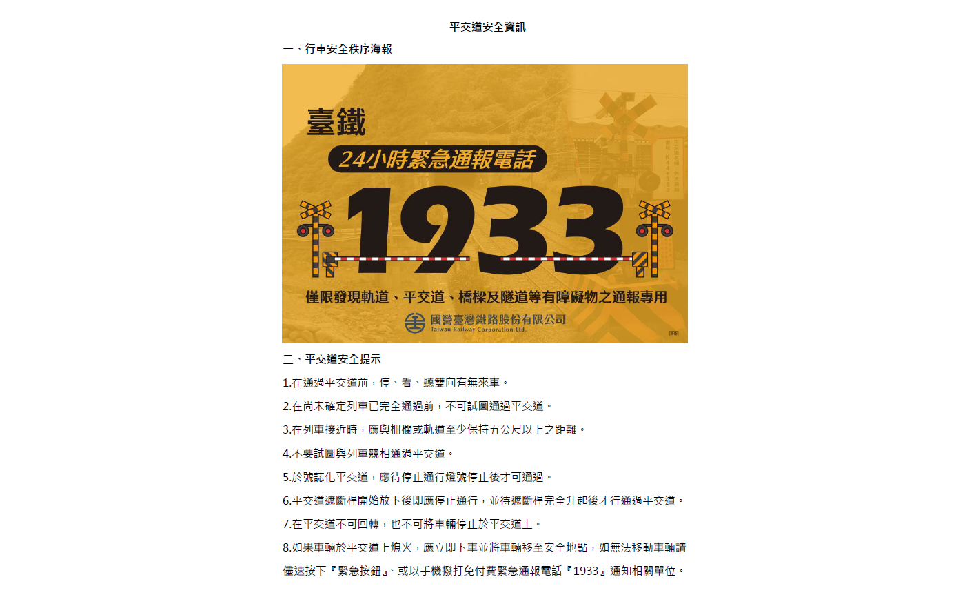 平交道安全資訊